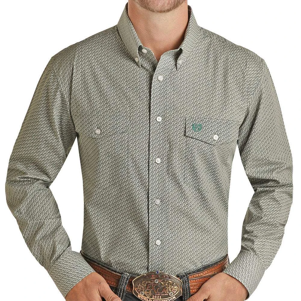 Panhandle Men’s Select Geo Poplin Print Long Sleeve Button Down