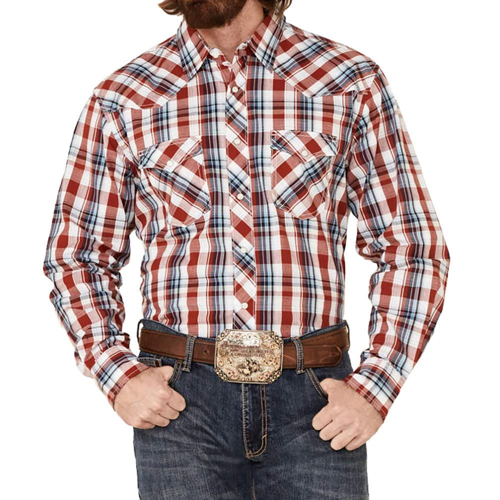 This Wrangler western pearl snap takes all your favorite elements and combines them into one. Made from 100% cotton, perfect for retaining its shape and wear after wear.